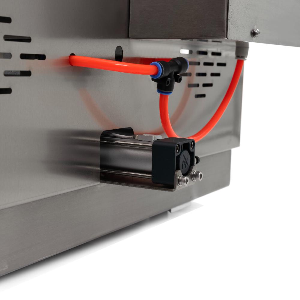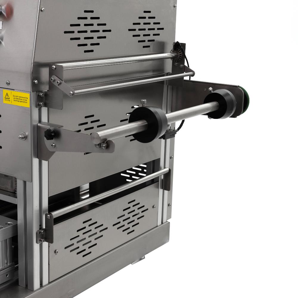 - Автоматизация и точная настройка. Управление осуществляется через сенсорный экран с возможностью программирования температуры нагрева (два терморегулятора), времени запечатывания, подъёма и накачивания газа. Аппарат автоматически обрезает плёнку по контуру лотка, обеспечивая аккуратную упаковку.