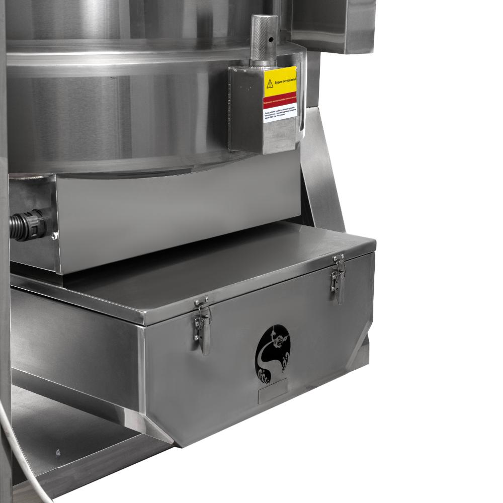 Система нагрева. Оба котла используют непрямой нагрев через двойную рубашку, заполненную высокотемпературным маслом класса вязкости 320. Это обеспечивает исключительно равномерное распределение тепла по всей поверхности дежи, предотвращает локальный перегрев и пригорание продукта. Нагрев осуществляется ТЭНами, погруженными в масляную рубашку.